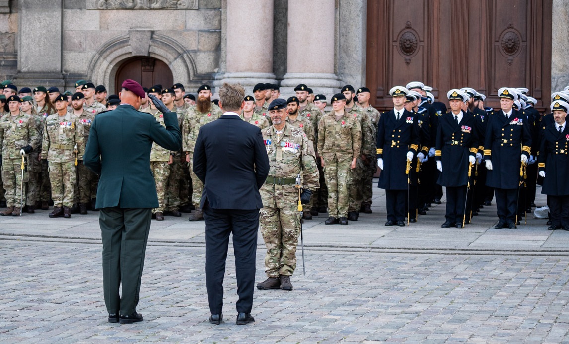 Forsvarschefen og Forsvarsministeren foran paraden på Christiansborg Slotsplads d.5.september 2024. Foto: Jonas Vandall